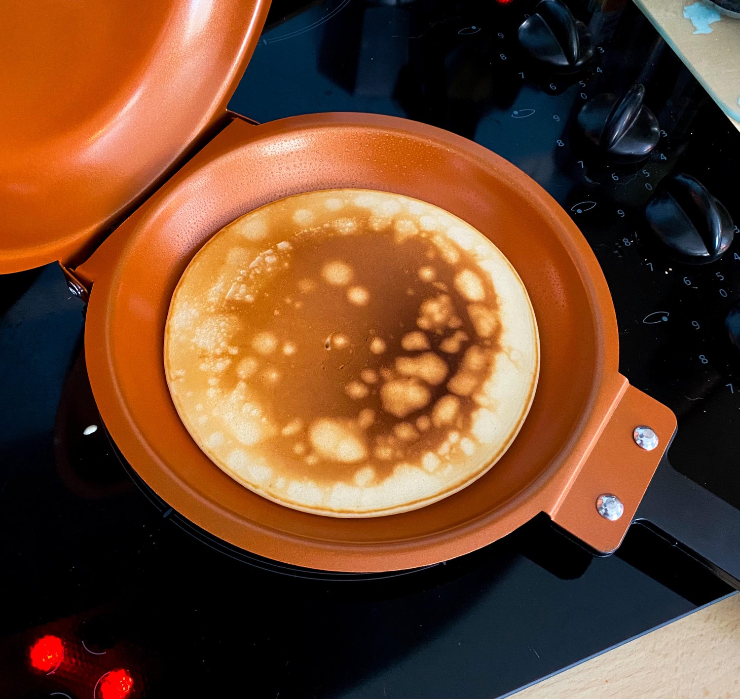 Ajoutez votre préparation (pancake, crêpe, omelette, tortilla, etc.), puis fermez.