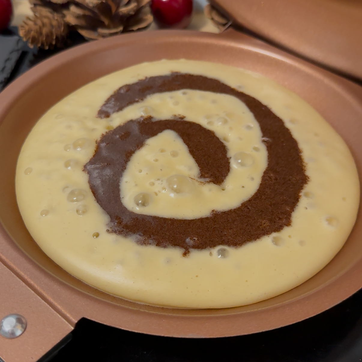Grâce à sa double face, pas besoin de spatule ! Fermez, retournez, c’est prêt !